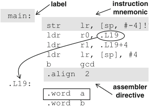 Schaumont, Figure 7.2 - Elements of an assembly program produced by gcc