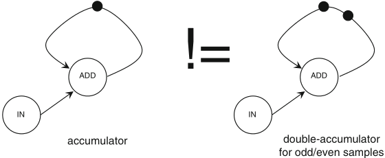 Schaumont, Figure 3.16 - Loops in SDF graphs cannot be pipelined