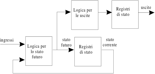 Uscite in funzione dello stato corrente (FSM di Moore)