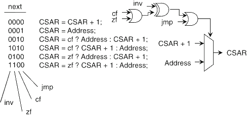 | 0010 | cf ? Address : CSAR + 1 | 1100 | zf ? CSAR + 1 : Address | ||